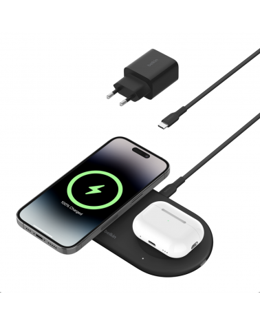 Belkin BoostCharge Pro Estación magnética de carga inalámbrica 2 en 1 con tecnología Qi2 de 15 W Black